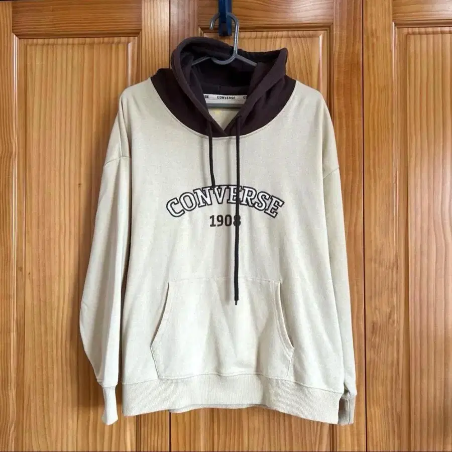 CONVERSE 후드 부착 후드티 베이지/브라운