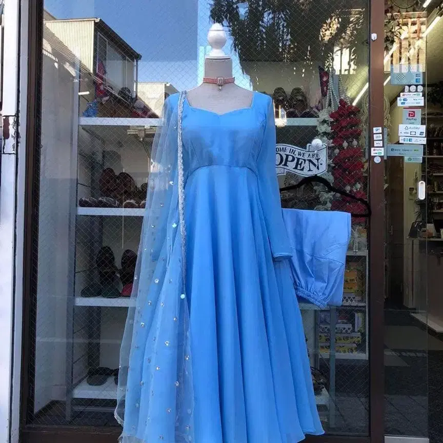 스카이블루 슬리브 포함 A라인 원피스