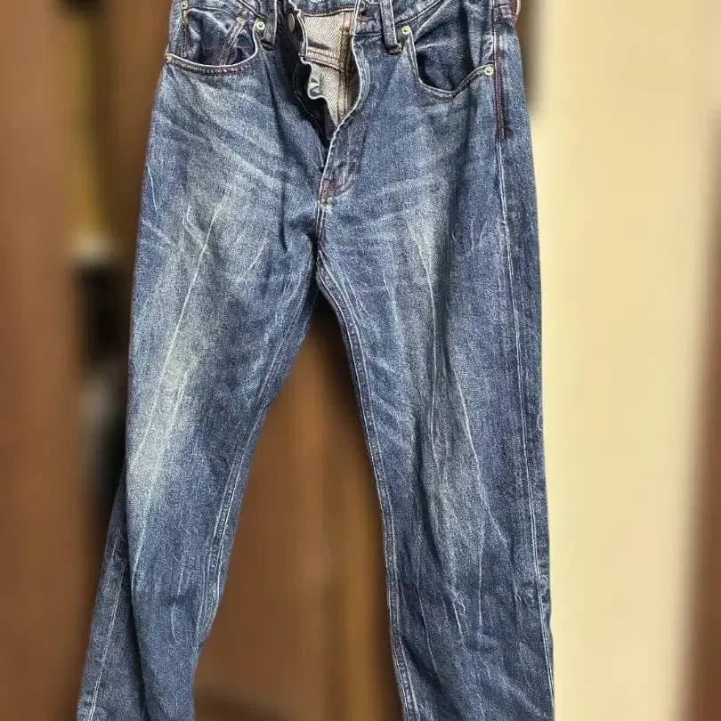 BAYFLOW 스트레이트 데님 팬츠 데미지 가공 허리 75cm