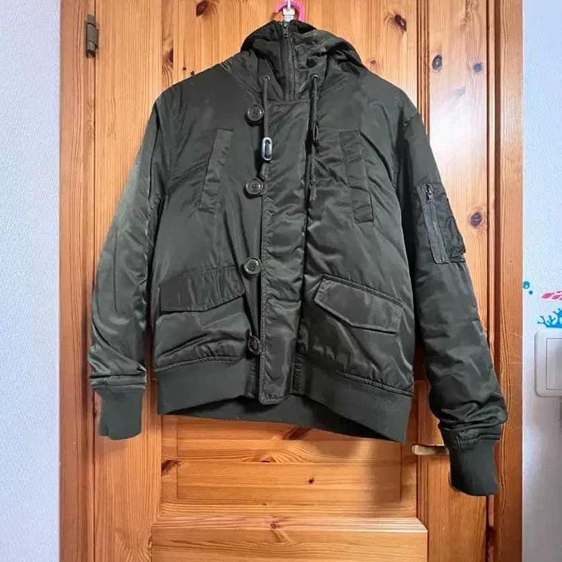 퍼 달린 올리브 그린 밀리터리 자켓