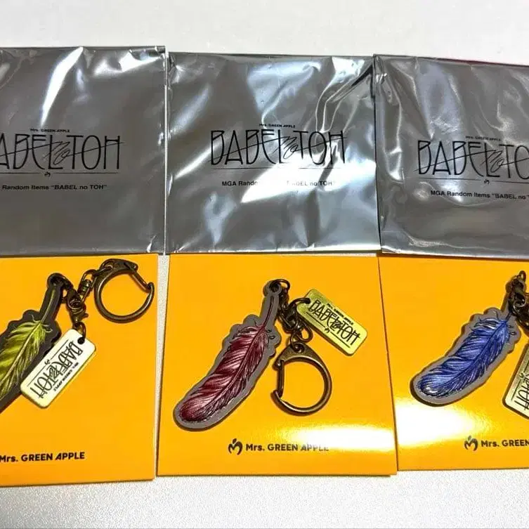바벨탑 미세스 가챠 깃털 컴프 노랑빨강파랑 랜덤 키링