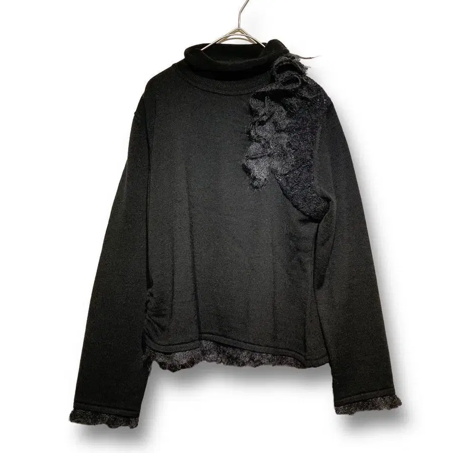 cest moijen 터틀넥 니트 울 레이스 모티브 블랙