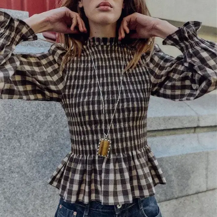[ ZARA ] 자라 체크 무늬 스모크 셔츠