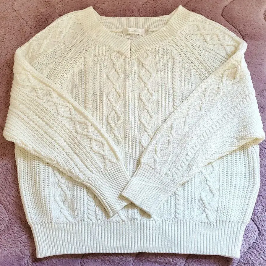입체적인 케이블 디자인이 특징이며, 적당한 파임의 V넥이 데콜테 라인을 예쁘게 보여줍니다.