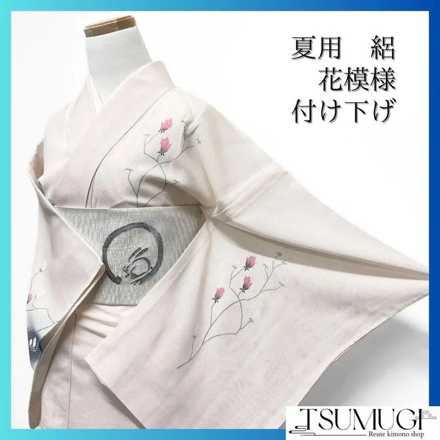 츠케사게 여름용 명주 꽃 무늬 물결 폭포 기모노 071w d
