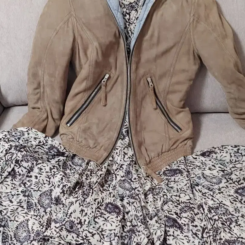 자동 번역되었어요. 원문보기베이지 색상의 후드 부착 자켓입니다. 퀼팅 안감과 지퍼 포켓이 부착되어 있어 스타일리시하고 기능적입니다.