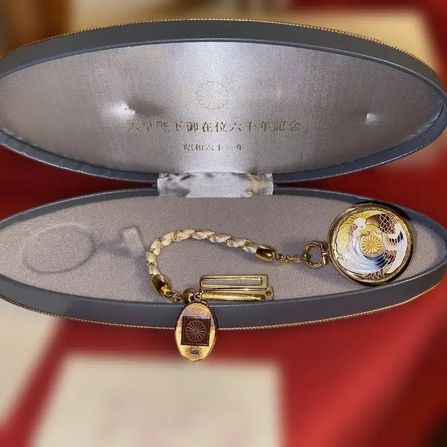 천황 폐하 즉위 60주년 기념 회중시계 일본 전통 디자인