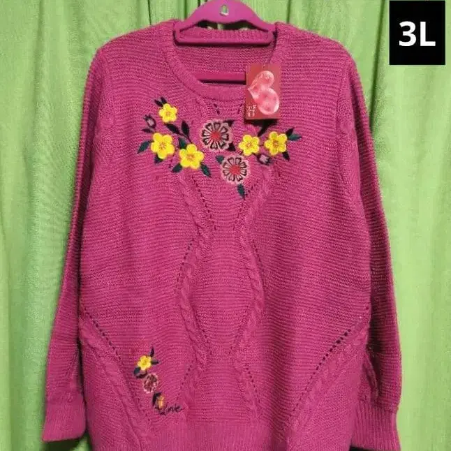 앤러브 3L 미사용품 예쁜 색 꽃 자수 니트 튜닉