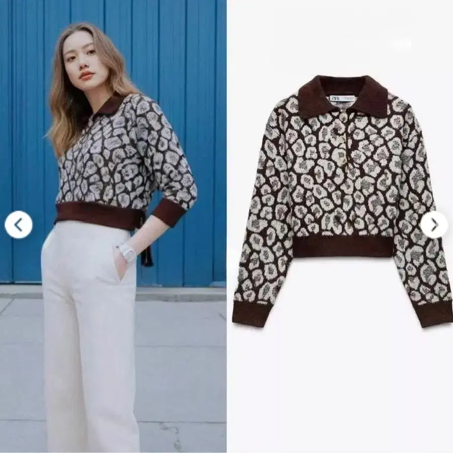 ZARA 애니멀 무늬 자카드 니트 폴로 스웨터