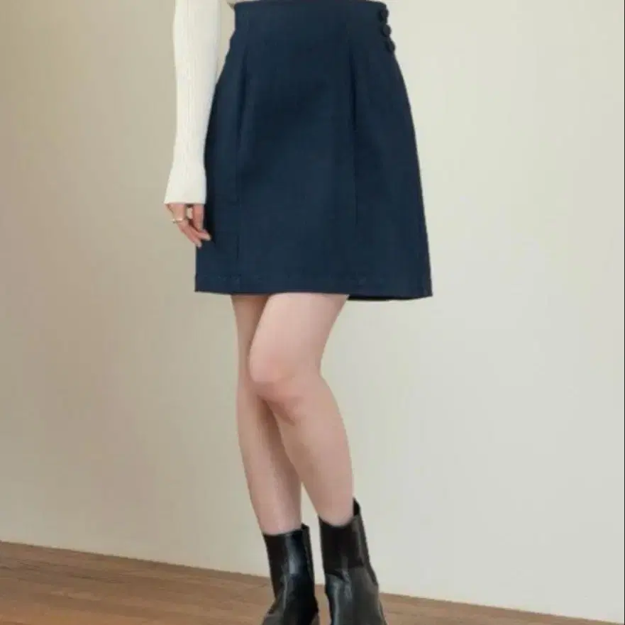 hinari 하이웨스트 데님 콘 스커트 네이비