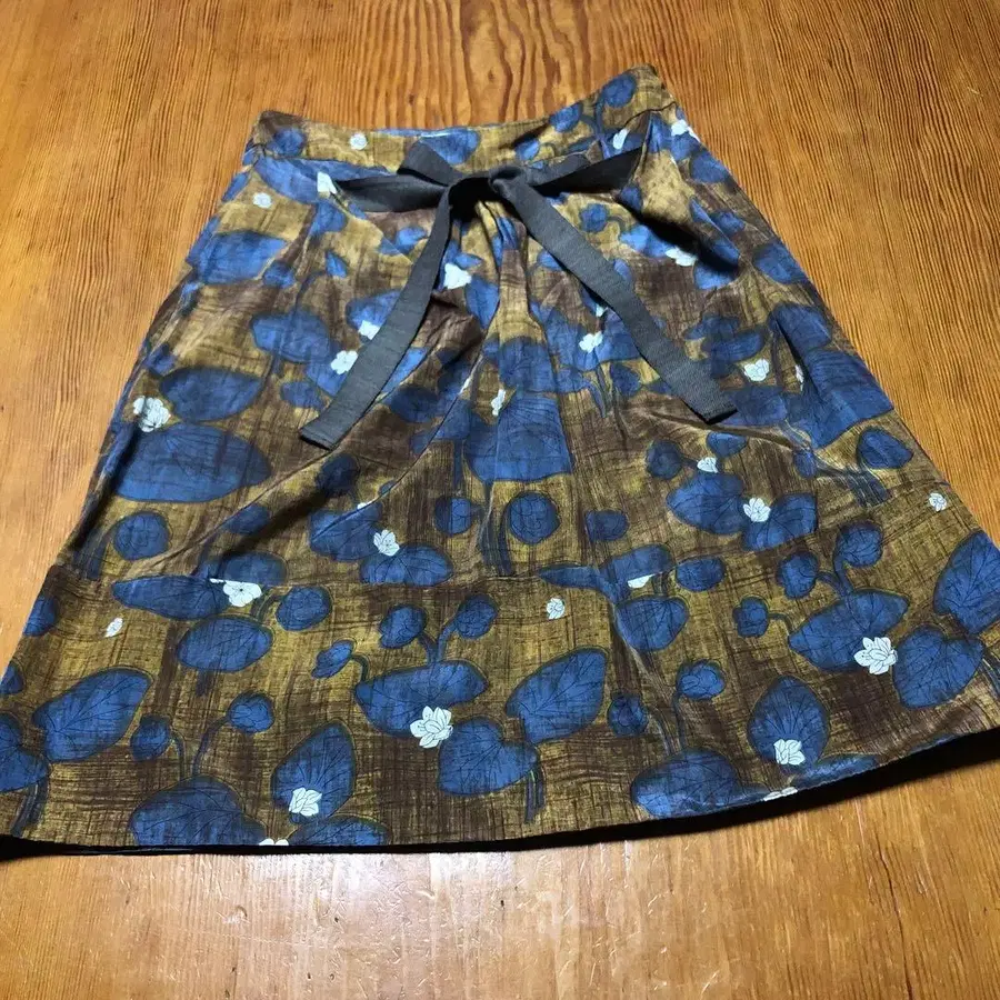 실크 코튼의 멋진 연꽃 패턴 cacharel 플라워 프린트 플레어 스커트