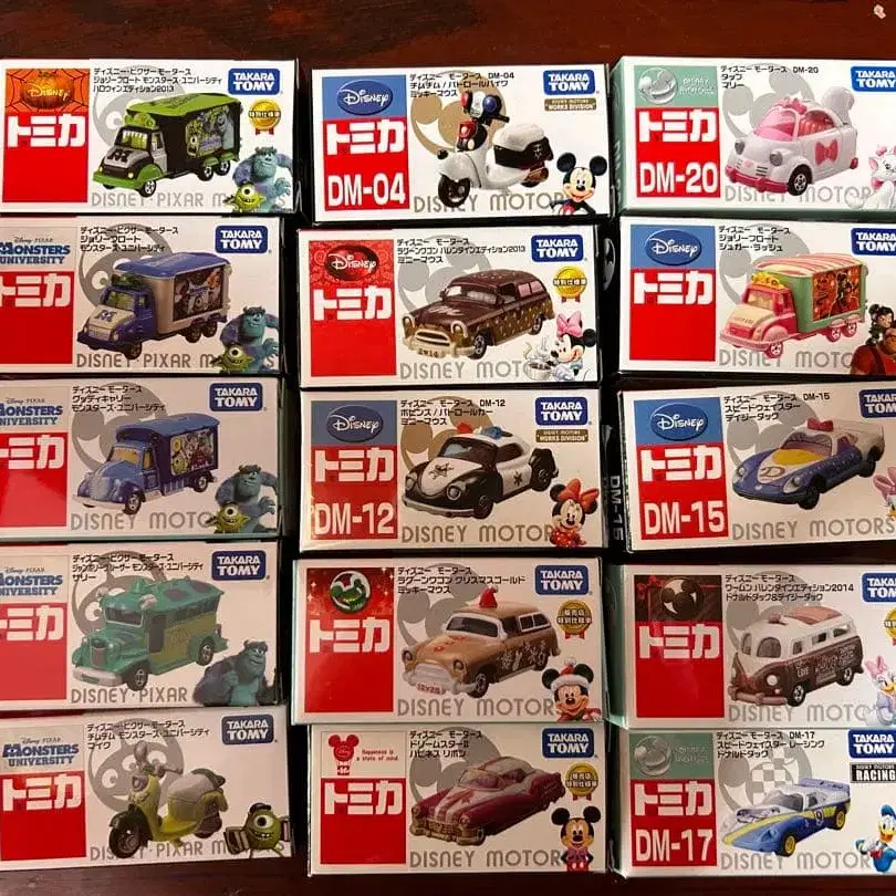 [ 상품명 ] 토미카 디즈니 모터스 15대 세트 1번째 사진 왼쪽 열 ( 몬스터즈 유니버시티 시리즈 ) 팀팀 마이크 ( 스쿠터형 ) 라군 왜건 샐리 굿디 캐리 몬스터즈 유니버시티 ( 파랑 ) 졸리 플로트 몬스터즈 유니버시티 ( 파랑 ) 졸리 플로트 몬스터즈 유니버시티 할로윈 에디션 2013 ( 그린 ) 1번째 사진 중앙 열 ( 미키 & 미니 외 ) 드림 스타 미키마우스 ( 해피니스 리본 ) ※ 30주년 한정판 디자인 라군 왜건 크리스마스 에디션 2013 미키마우스 DM-12 팝핀즈 패트롤카 미니 마우스 졸리 플로트 발렌타인 에디션 2014 미니 마우스 DM-04 팀팀 패트롤 바이크 미키마우스 1번째 사진 오른쪽 열 ( 도널드, 데이지, 마리, 슈가 러쉬 ) DM-17 스피드 웨이 스타 레이싱 도널드 덕 웜 발렌타인 에디션 2014 도널드 덕 & 데이지 덕 DM-15 스피드 웨이 스타 데이지 덕 졸리 플로트 슈가 러쉬 DM-20 탭 마리 [ 상품 상태 ] 보관 상태: 금연/반려동물 없음/자택 보관 일부 상자는 약간 손상되었으나 내용물에는 거의 손상이 없습니다. [ 추천 포인트 ] 현재 판매되지 않는 매우 귀한 모델입니다 ✨ [ 주의 사항 ] 새상품급이라도 중고품임을 이해하신 후 구매해 주세요. 개인 검품이므로 누락이 있을 수 있습니다. 발송은 라쿠라쿠 메루카리 택배를 예정하고 있습니다. 낱개 판매는 대응하지 않습니다. 발송은 2026/1/13부터 시작 예정입니다. ★ 즉시 구매 OK입니다! ★ 궁금한 점이 있다면 부담 없이 댓글 주세요.