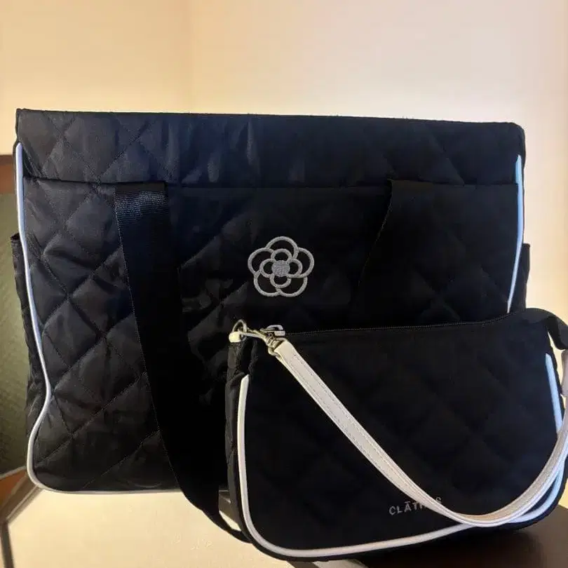 클레이서스 블랙 퀼팅 토트백과 파우치