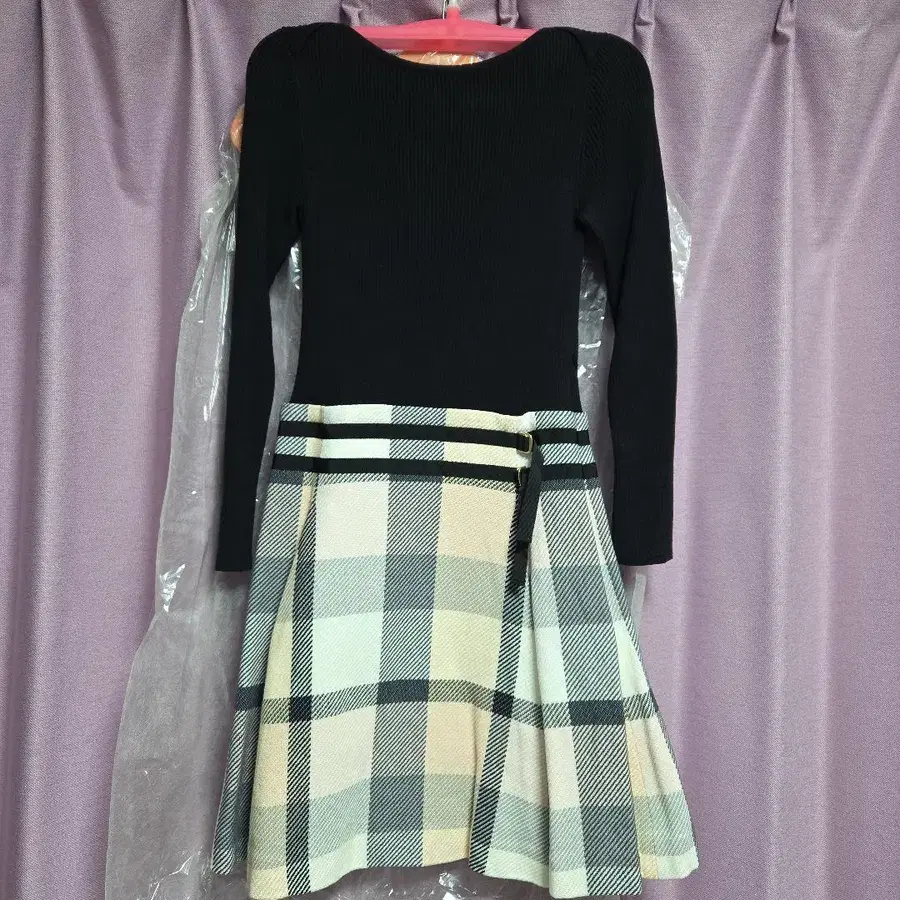 블랙 체크 무늬 긴팔 무릎 기장 원피스