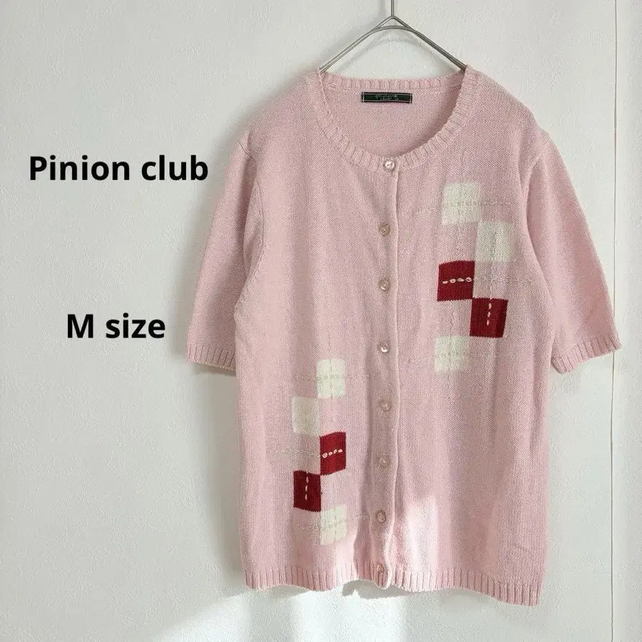 피니언 클럽 니트 가디건 M 핑크 반팔 아가일