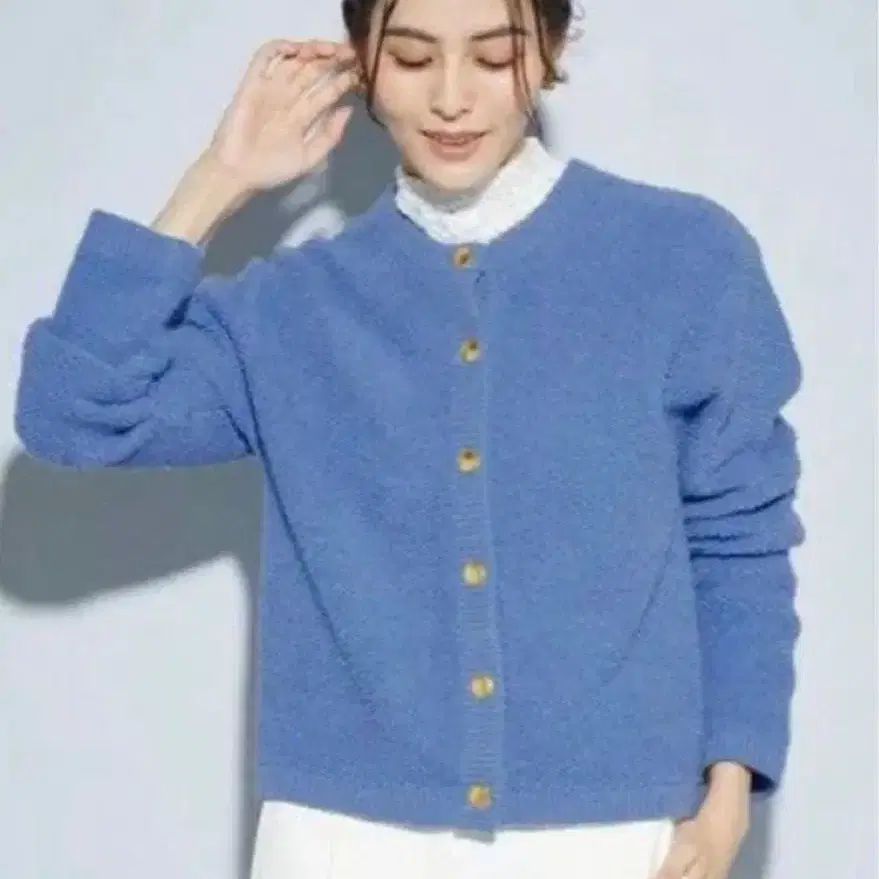 PLST 엑스트라 파인 메리노울 미들 게이지 파일 가디건 블루