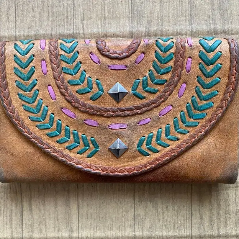 mahiya 가죽 자수 장지갑 브라운 마히야