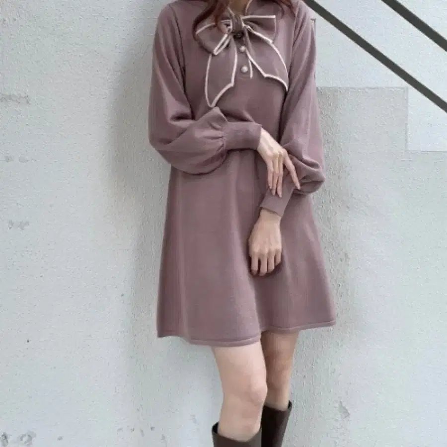 MAJESTIC LEGON 리본 타이 미니 니트 원피스