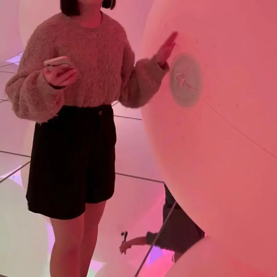 긴팔 니트 & 숏팬츠 세트 Heim 베이지 핑크 모코모코 블랙