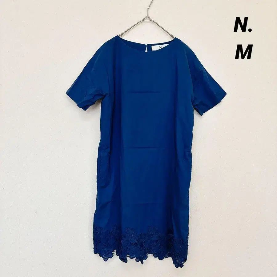 N. 반팔 원피스 블루 M 밑단 레이스 면 100%