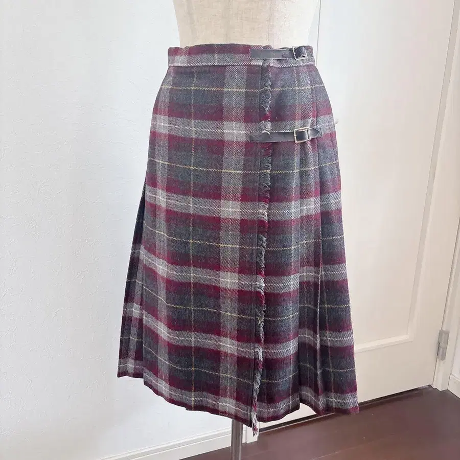 새상품급 GLEN NEVIS 타탄 체크 롱 플리츠 랩스커트 L