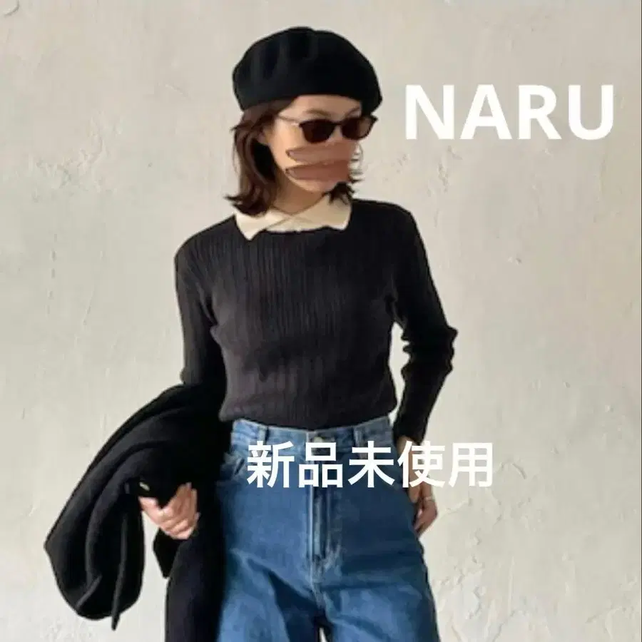 NARU 아사코 콜라보 랜덤 리브 카라 부착 니트