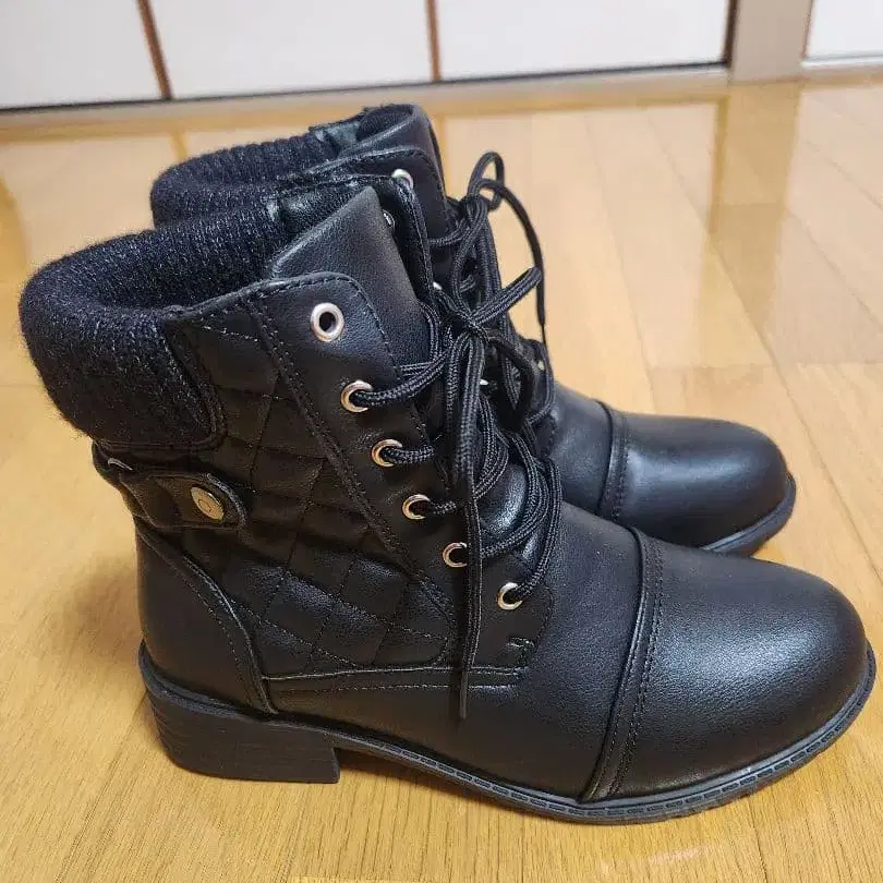 블랙 레이스업 부츠 (니트 접이식 포함)
