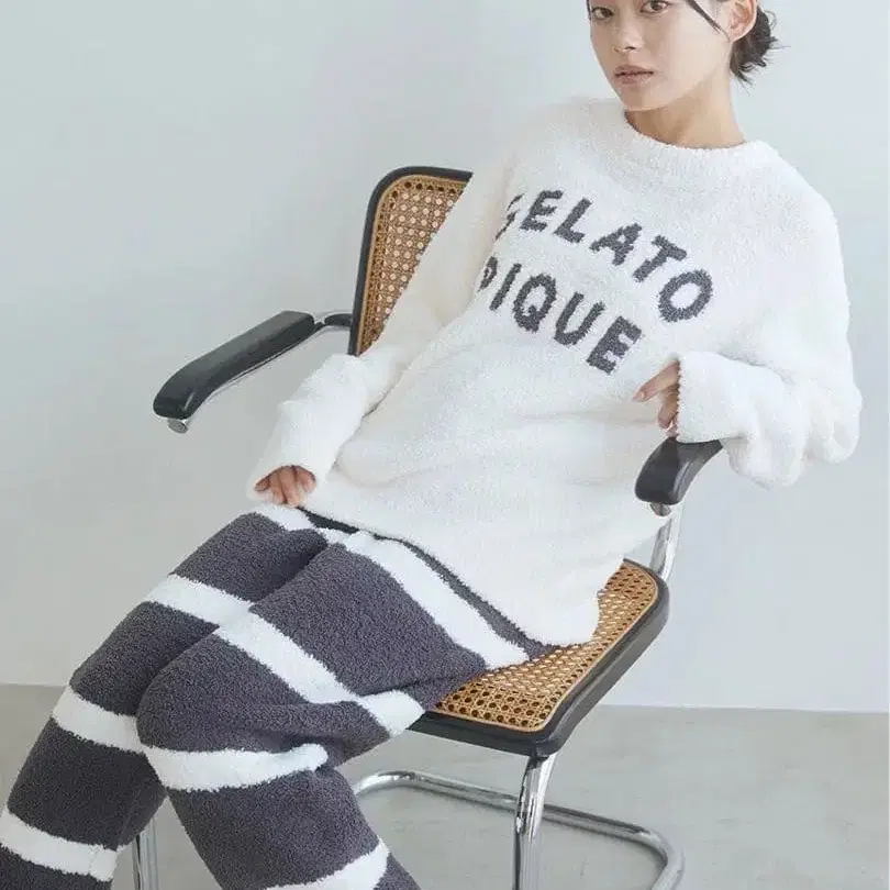 젤라또피케 파우더 로고 자카드 풀오버 & 롱 팬츠 세트