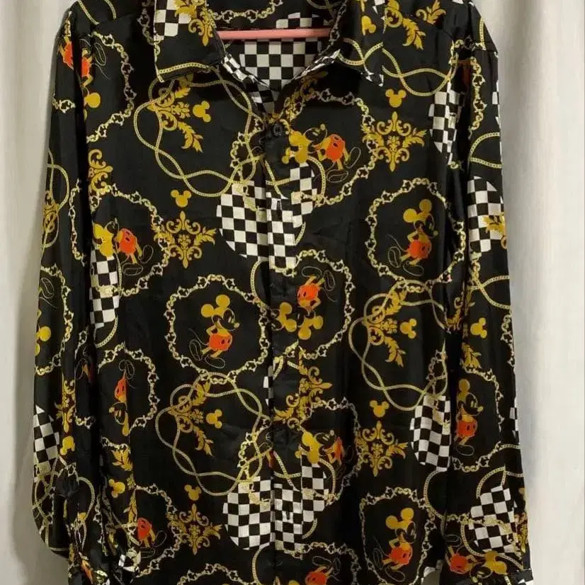 디즈니 미키마우스 광택 폴리에스테르 셔츠 올 패턴 블랙 스카프 패턴 S
