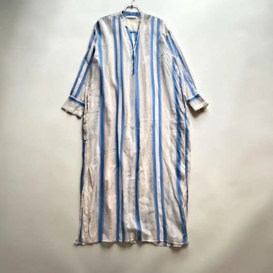인도 면 100%로 만들어진 착용감이 가벼운 노카라 셔츠 원피스.