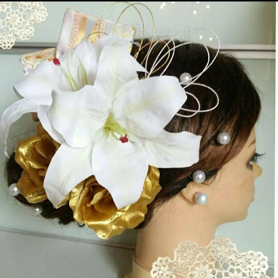 카사블랑카 x 골드 장미 머리 장식 결혼식 성인식