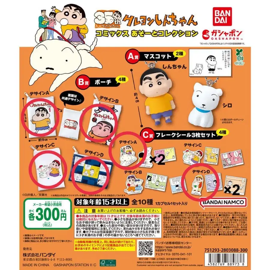 짱구는 못말려(크레용 신짱) 아소토 컬렉션 B상 파우치 C상 플레이크 씰