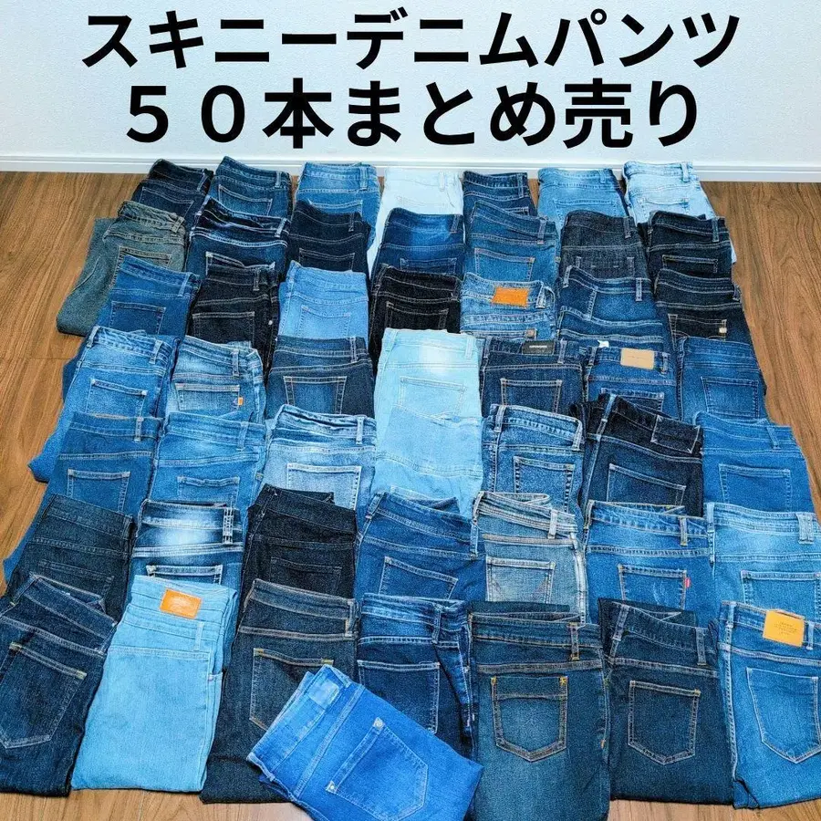 • 스키니 데님 팬츠 묶음 판매 50개 리메이크 소재 핸드메이드 원단 수선