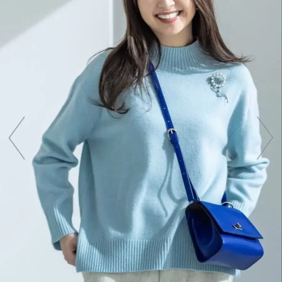 abahouse ecru/터틀넥 니트 스웨터/루즈핏 스카이블루
