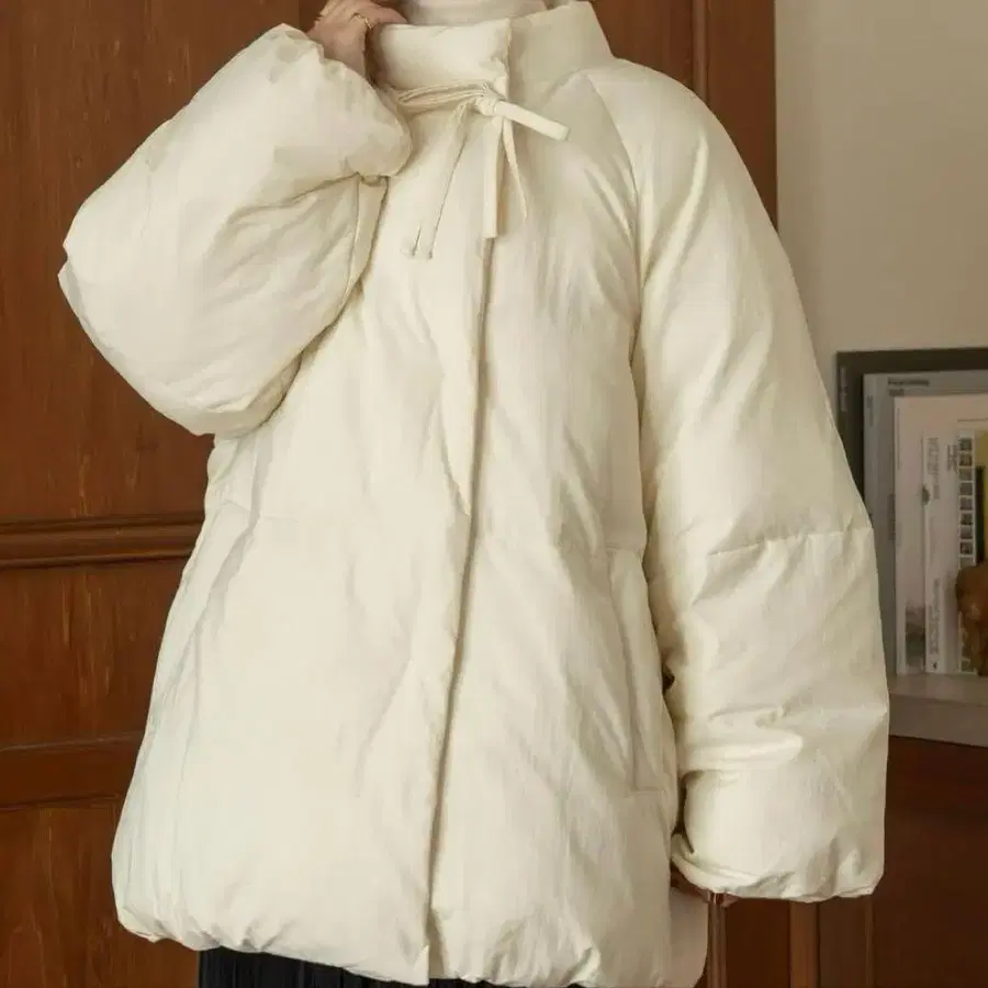 hinari 충전솜 리본 미들 코트 아이보리/FREE