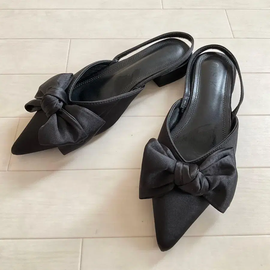 새상품급 O.S.K 펌프스 샌들 리본 검정 블랙 포인트 토