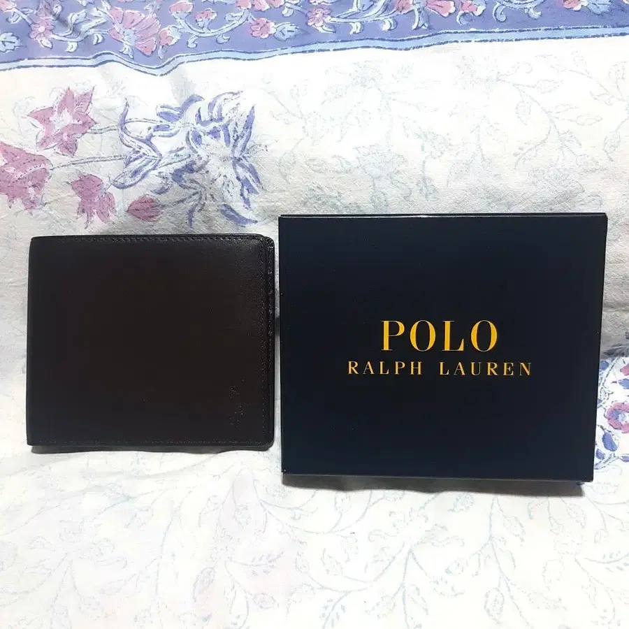 POLO 랄프 로렌 소가죽 2단 접이식 지갑 다크 브라운