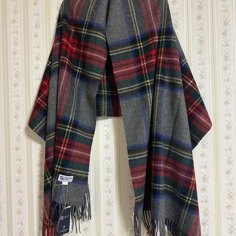 존스톤스 캐시미어 대형 스톨 머플러 그레이 스튜어트