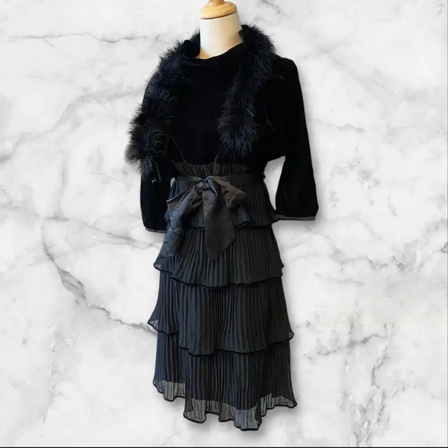 티어드 플리츠 드레스의 셋업입니다.