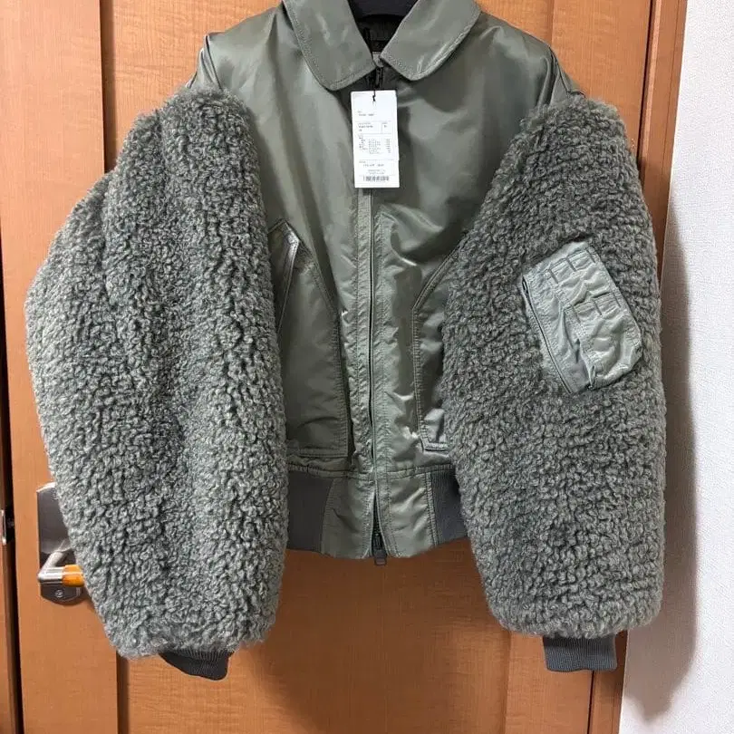 올리브 드라브의 MA-1 자켓, 보아 슬리브 디자인으로 따뜻함을 제공합니다.