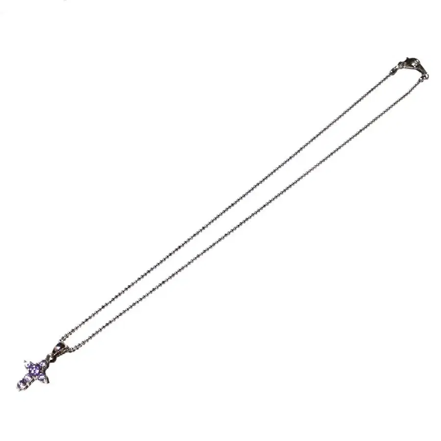 새상품급 크로스 모티브 목걸이 실버 보라색 컬러 스톤