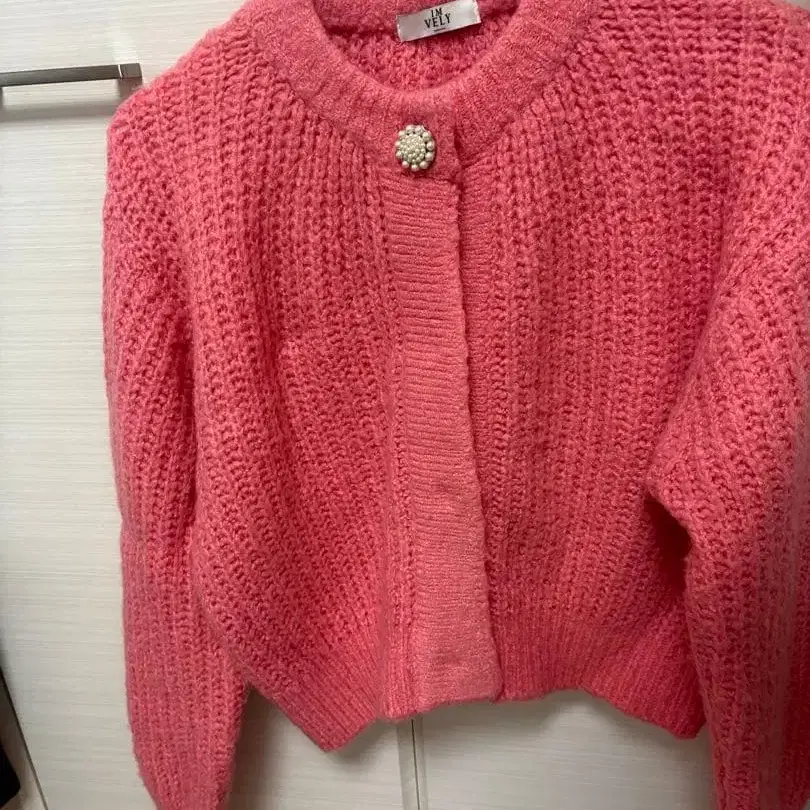 한국 핑크 니트 가디건 꽃 모양 버튼