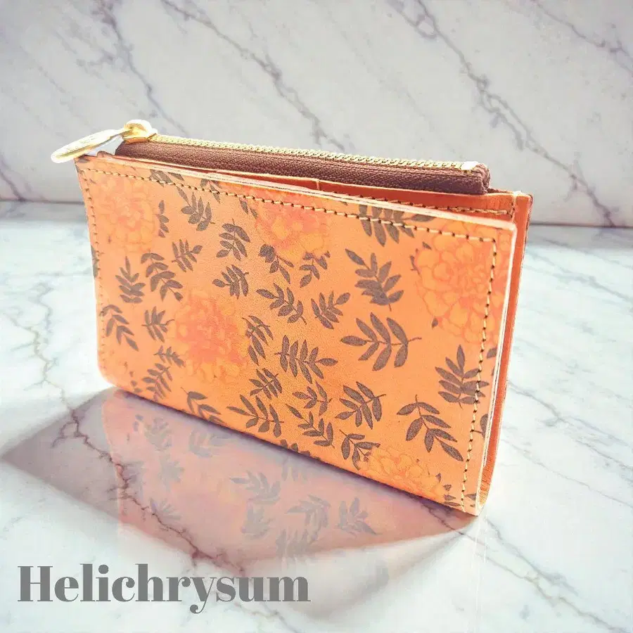 헬리크리섬 키케이스 동전 지갑 꽃무늬 주황색 가죽 초 레어