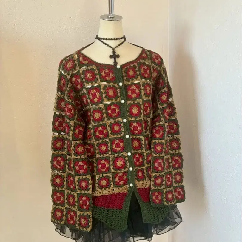 90s vintage 열쇠망 패치워크 레어 디자인 니트 가디건 펄