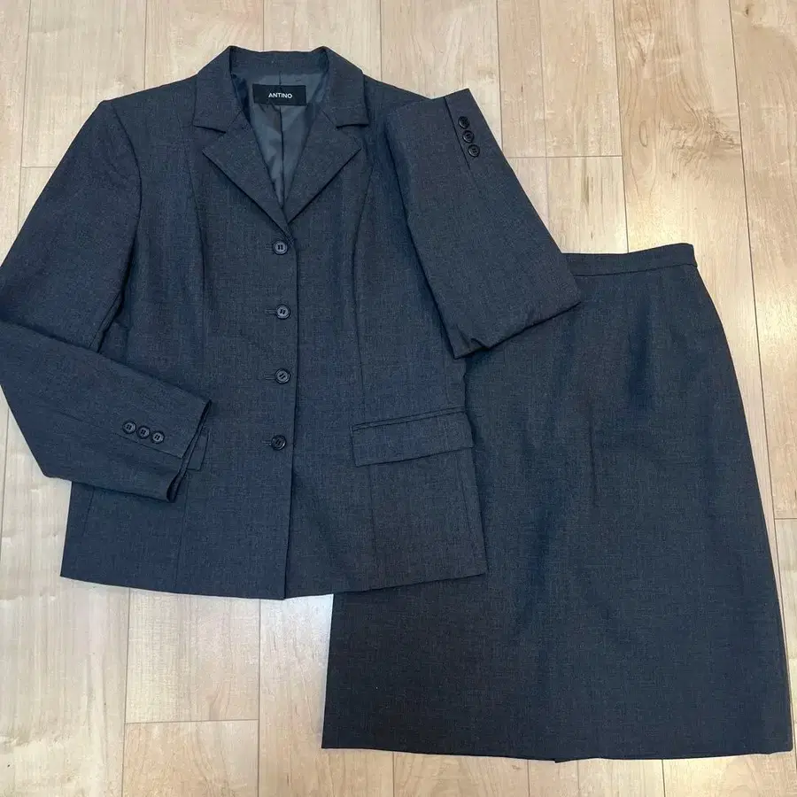 그레이 색상의 ANTINO 수트, 자켓과 스커트 세트입니다.