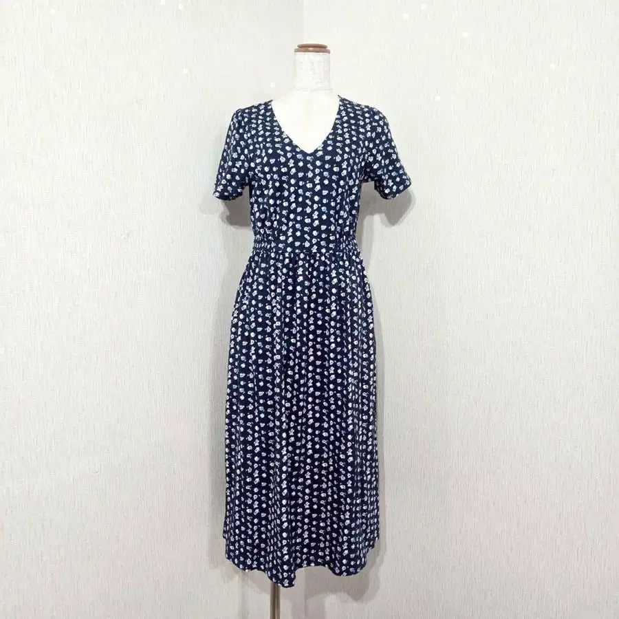 PAUL&JOE x 유니클로 V넥 롱 원피스 미니 꽃무늬 반팔 블루