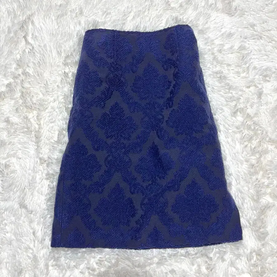 내추럴 뷰티 베이직 스커트 타이트 스커트 무릎 기장 네이비 자카드 직조 무늬 고급 포멀 오피스 캐주얼