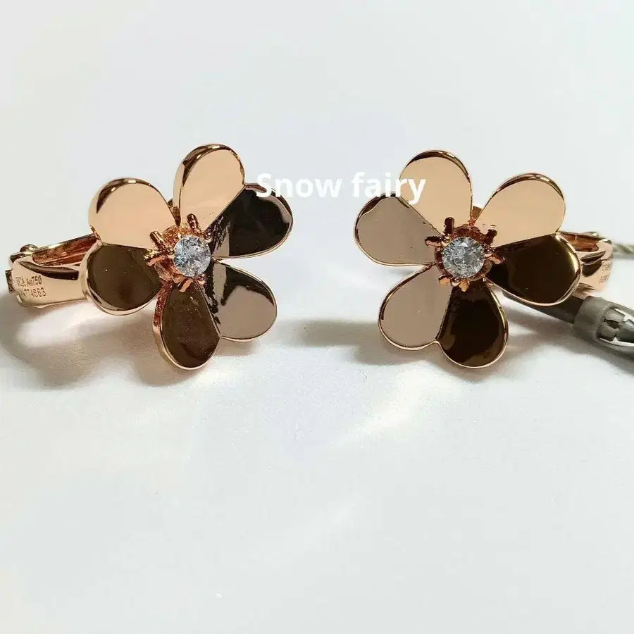 포스트 부분은 거의 왜곡이 없지만, 클립의 구멍에 포스트가 잘 들어가도록 조정되어 있으므로, 한쪽 귀걸이는 모티브와의 연결 부분 근처가 약간 내려가 있습니다.