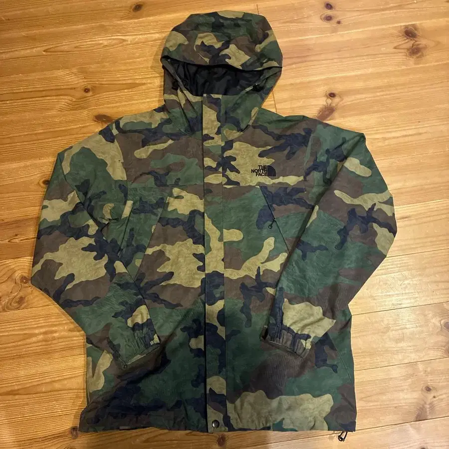 카모플라쥬 디자인의 후드 부착 마운틴 파카.