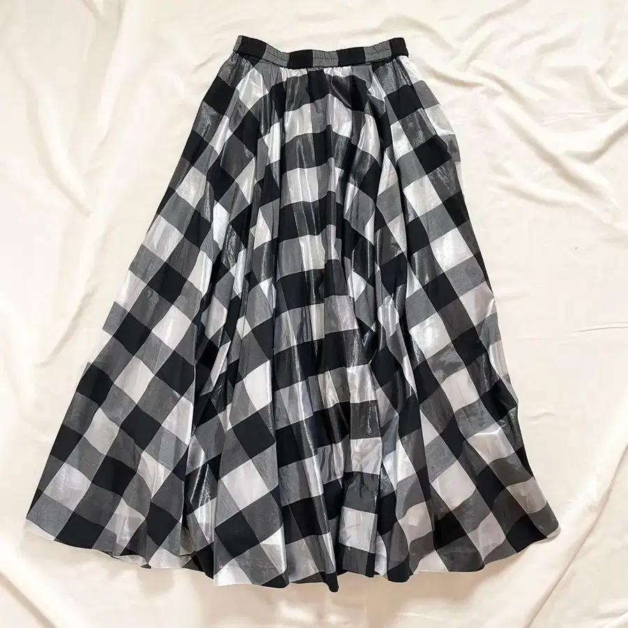 #롱스커트 #플레어스커트 #깅엄체크 #체크무늬 #광택스커트 #모노톤 #깔끔한코디 #성숙/러블리 #포멀 #하나이 #구제 #여성 빈티지